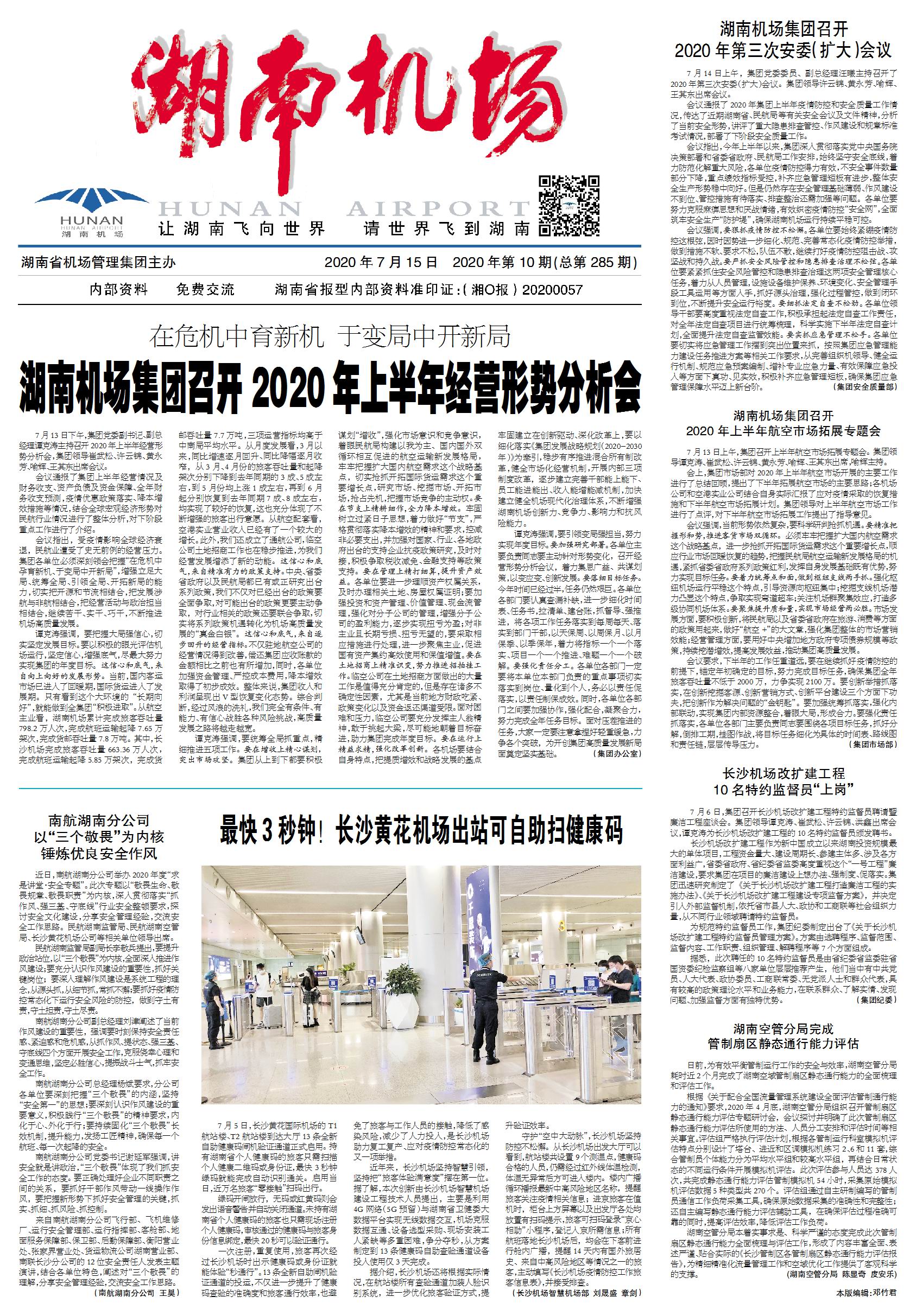 湖南机场集团召开2020年上半年经营形势分析会
