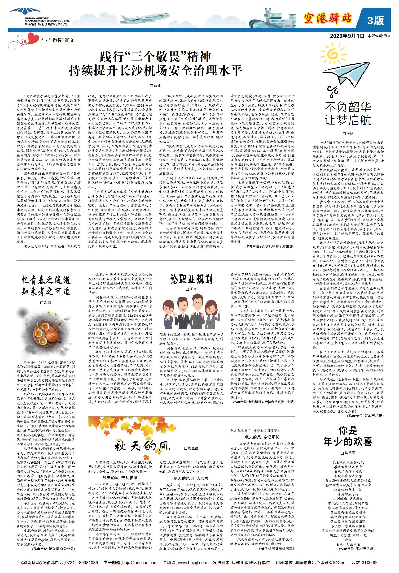 践行“三个敬畏”精神 持续提升长沙机场安全治理水平