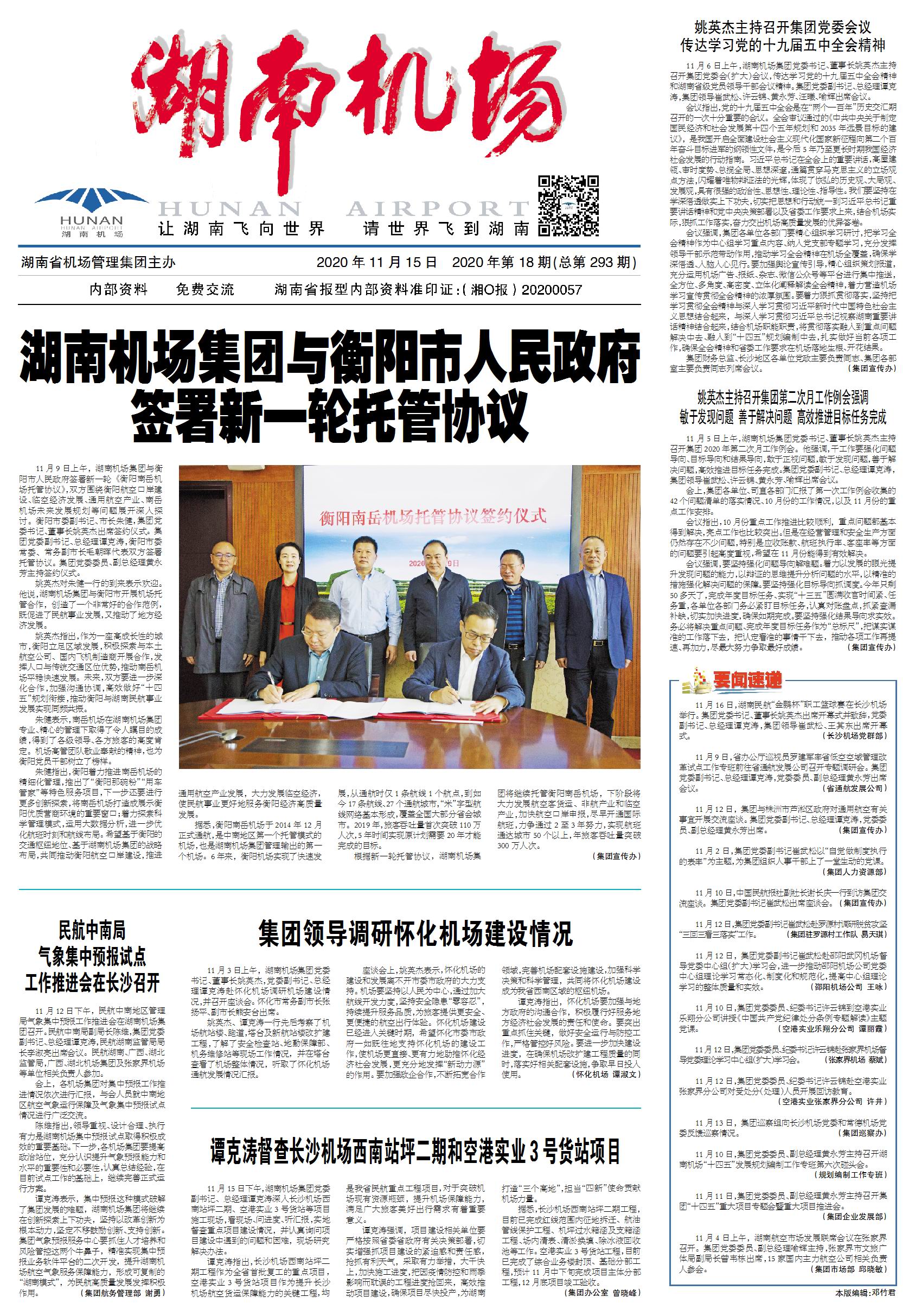 湖南机场集团与衡阳市人民政府签署新一轮托管协议