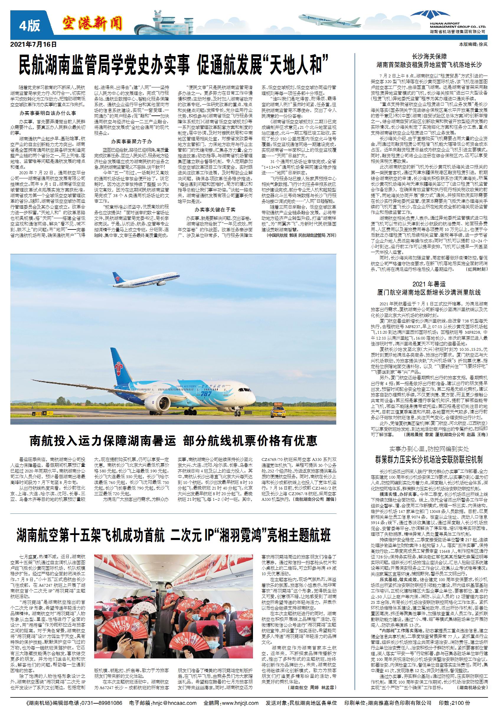 南航投入运力保障湖南暑运 部分航线机票价格有优惠
