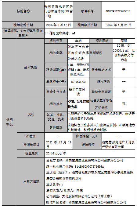 张家界市永定区天门山酒店东侧30亩土地出租公告