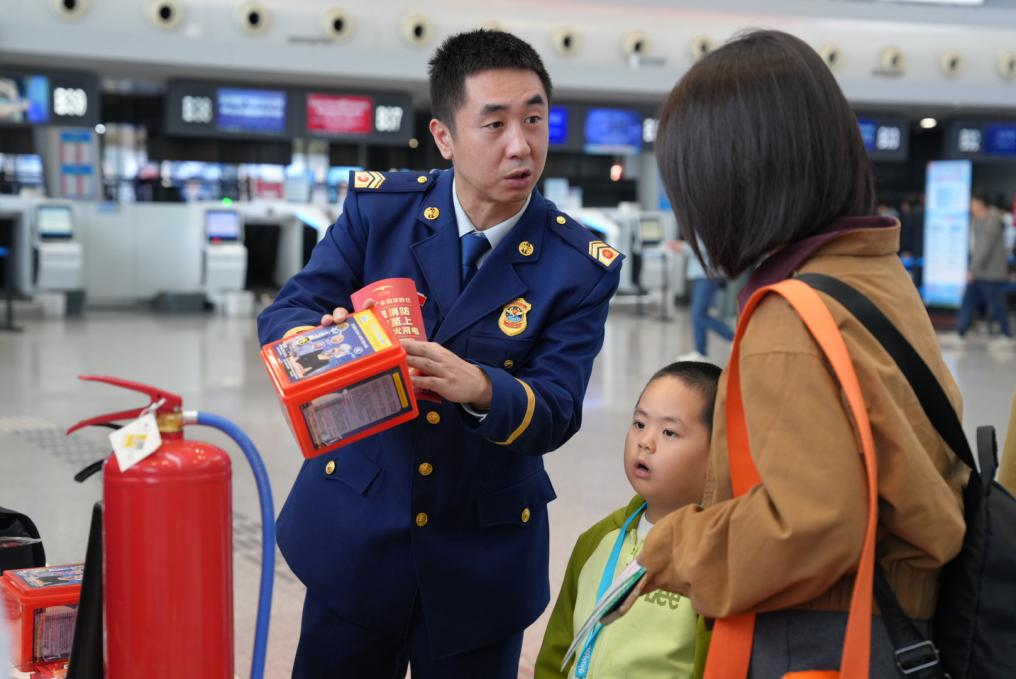 11月9日,长沙机场消防急救部在T2航站楼举办“全民消防、生命至上——安全用火用电”宣传活动。通过器材演示、实操体验、普及急救常识等环节,提升旅客消防安全意识,共同建设平安机场。